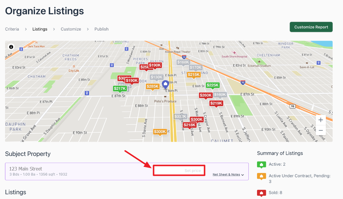 - Once added, it will appear on the right-hand side under "Your CMA Report."